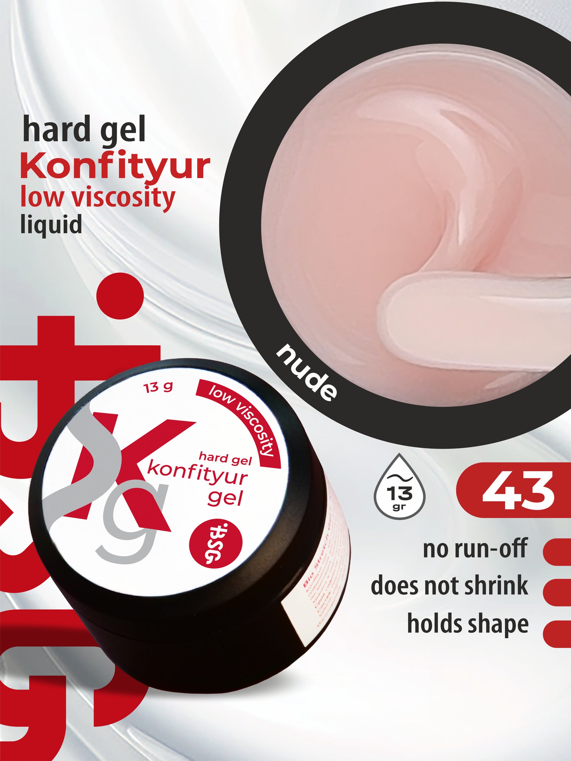 BSG Gel duro para extensiones Konfityur ¹43 BAJA VISCOSIDAD - Tono transparente del camuflaje más delicado con nota de melocotón (13 g)