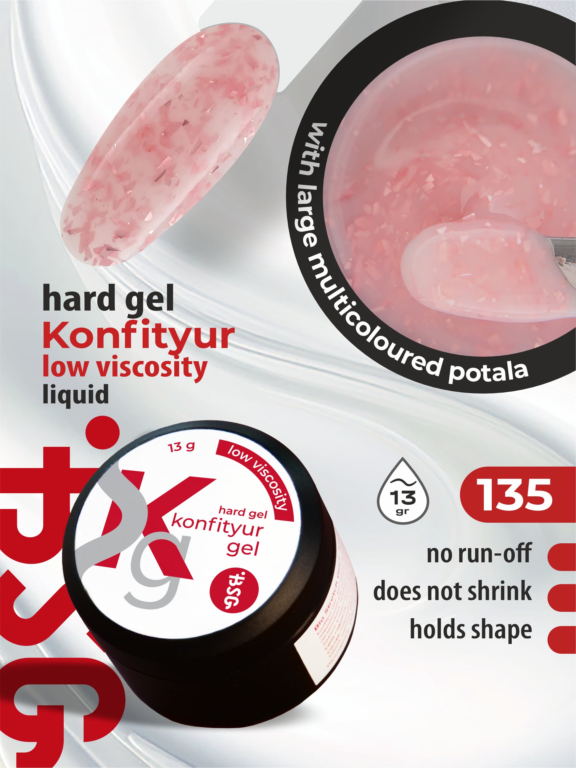 Gel duro BSG para extensiones Konfityur ¹135 BAJA VISCOSIDAD - Colección Sumer Sundresses (13 g)